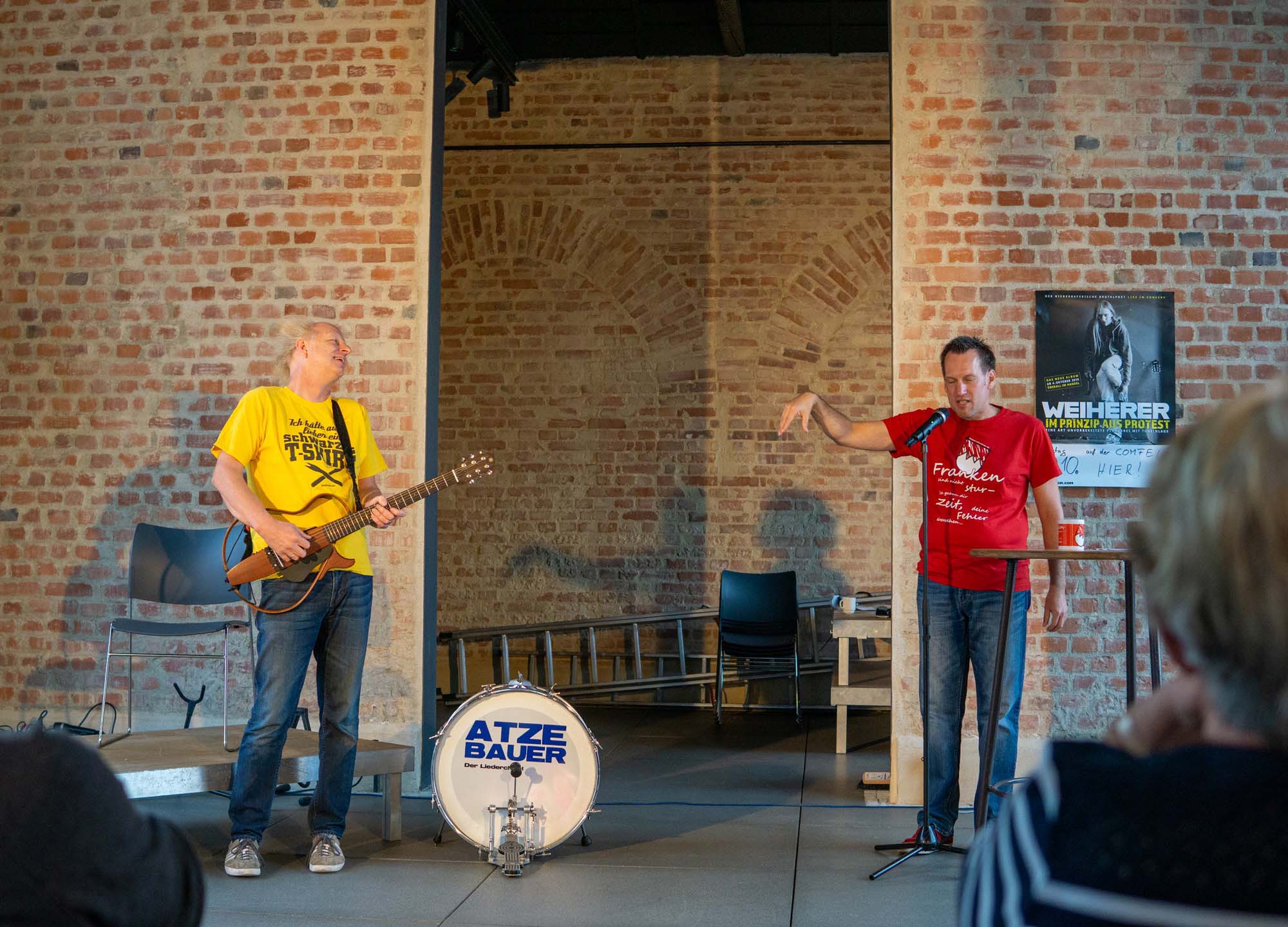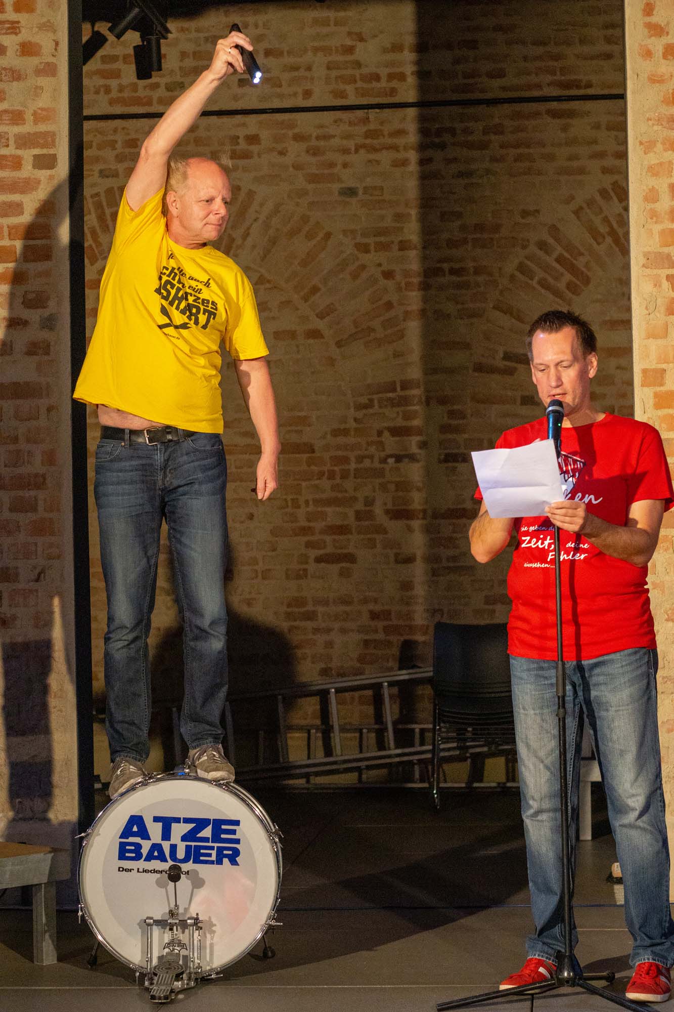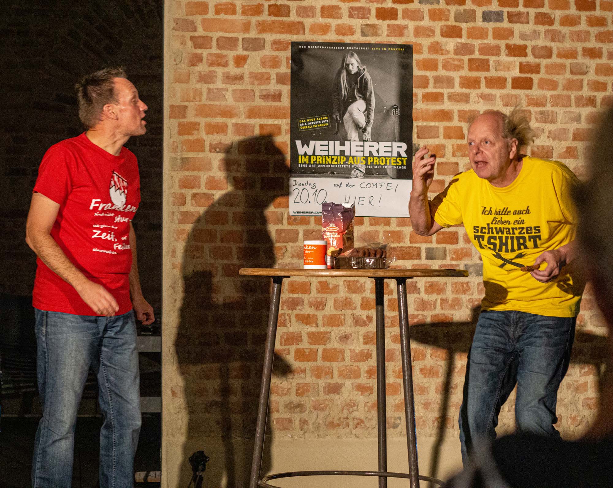 Anlässlich des 30 jährigen Jubiläums unserer Firma war für dieses Jahr eine Veranstaltungsreihe geplant. Die Comfei – Comedy nach Feierabend. Die zweite musste coronabedingt leider ausfallen. Das dritte Event der Reihe am 22.09. konnte nun endlich wieder stattfinden. Da die ursprüngliche Location – unsere Produktionshalle – zu klein ist, um die Hygiene- und Abstandsvorschriften einzuhalten, sind wir kurzerhand in das Heizhaus der Fortuna Kulturfabrik umgezogen. Dieses Mal waren „Der Kaiser & der Bauer“ am Start und haben den Besuchern ab 19 Uhr ordentlich eingeheizt. Es wurde viel gelacht, gequatscht und es gab sogar schon erste Weihnachtsstimmung auf der Bühne, wobei sich die beiden Künstler nicht einig waren, ob im September schon Lebkuchen und Spekulatius gegessen werden dürfen.